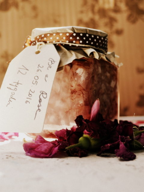 - perfumy ( płatki róży zalane alkoholem…..do wypróbowania dopiero za 3 miesiące. Czekam cierpliwie…mam nadzieję,że rozpoznacie Mnie po zapachu Róży 😉