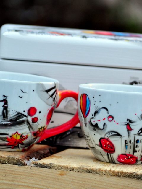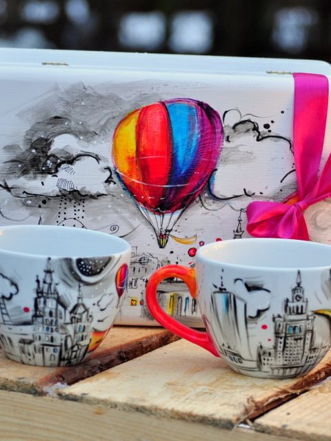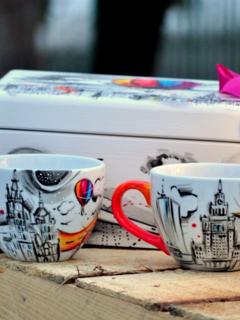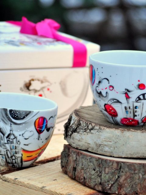 Indywidualny zestaw dwóch kubeczków 0,5l, zapakowanych w ozdobną skrzynkę.