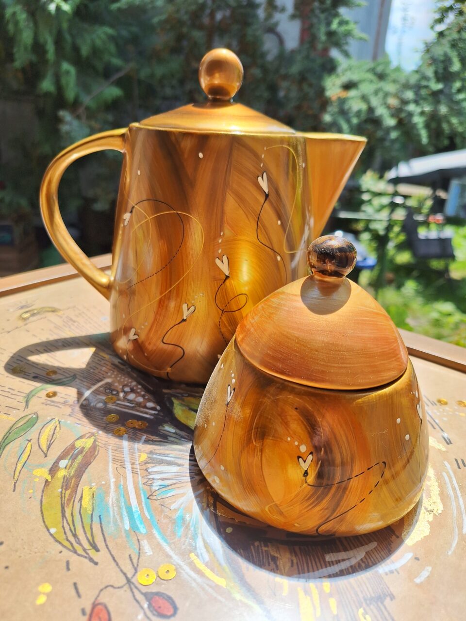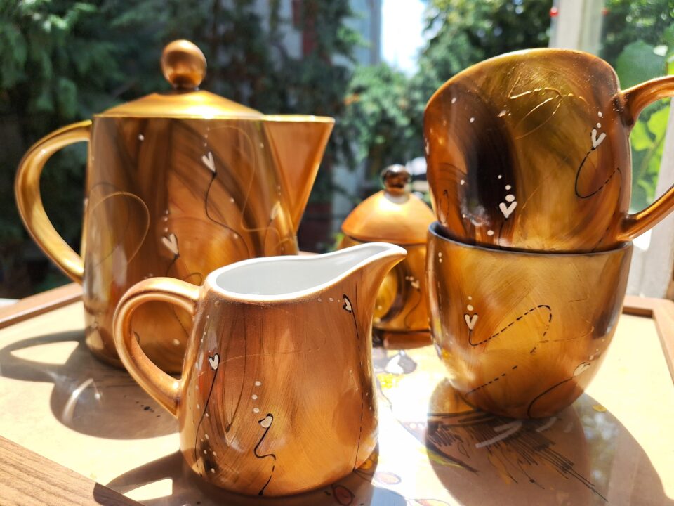 Zestaw „Złoto w moim brzuszku.” Dzbanek+cukiernica+2 kubki