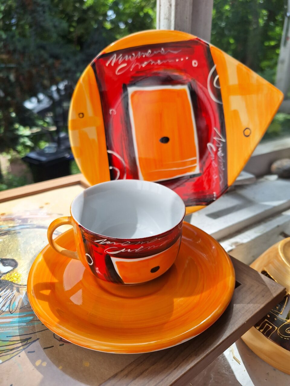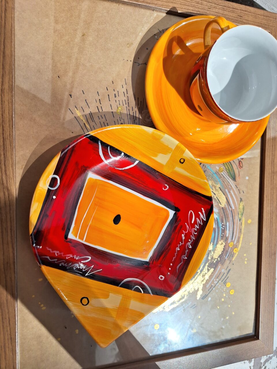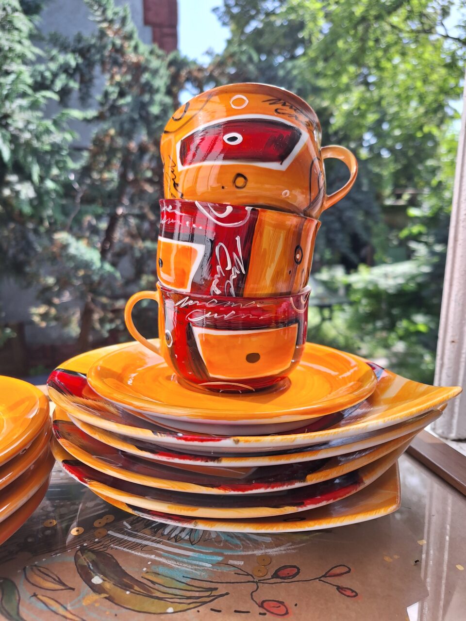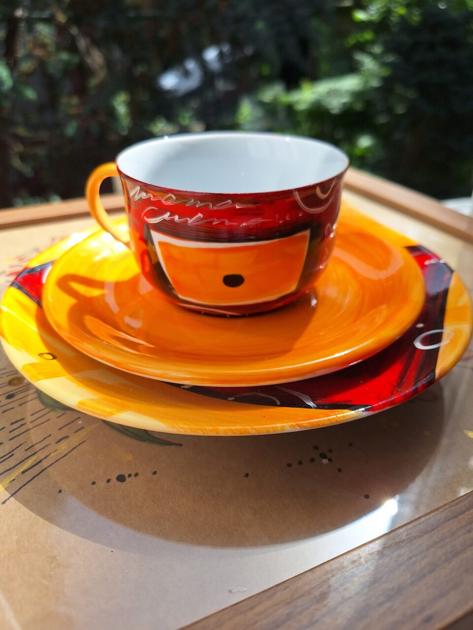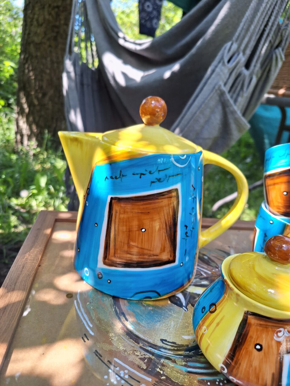 Zestaw „Abstrakcyjne wybory” Dzbanek+2 filiżanki+cukiernica.
