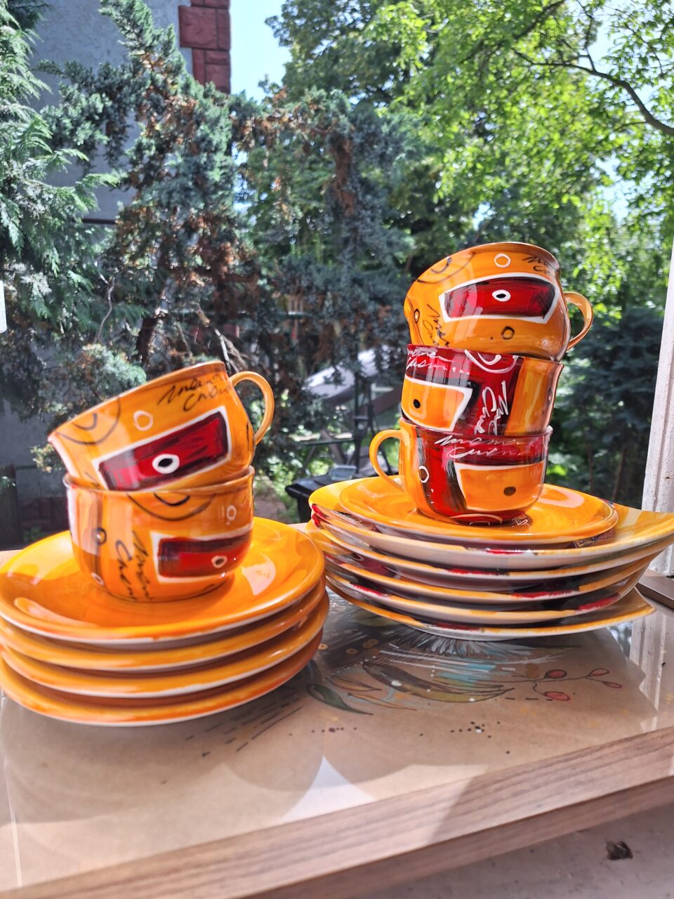 Zestaw „Słońce o poranku” obejmuje Dzbanek+cukiernica+ dowolna ilość filiżanek.