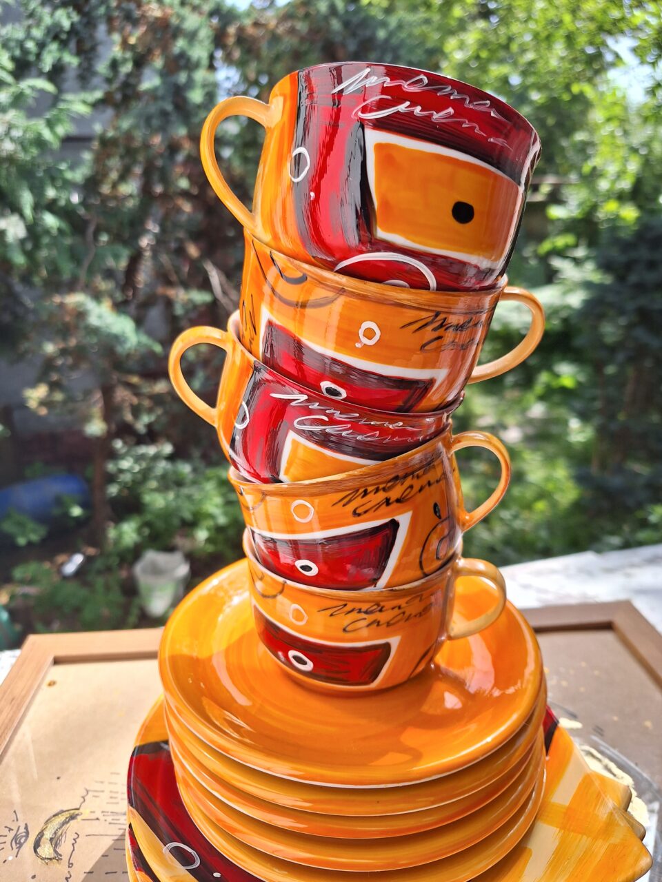 To soczysty zestaw 5 filiżanek z talerzykami deserowymi.