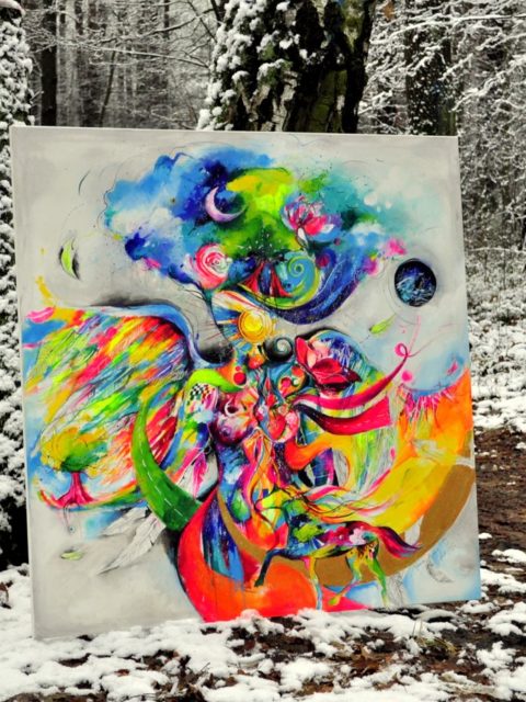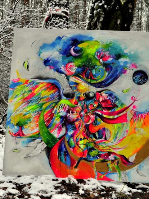 Chciałabym opowiedzieć wam coś więcej o moim nowym obrazie , ale pozwolę na tą pustą przestrzeń,by każdy mógł znaleźć swoją drogę do niego, by swoim kolorem i energią przemówił wprost do serca, zabierając go w indywidualną podróż.